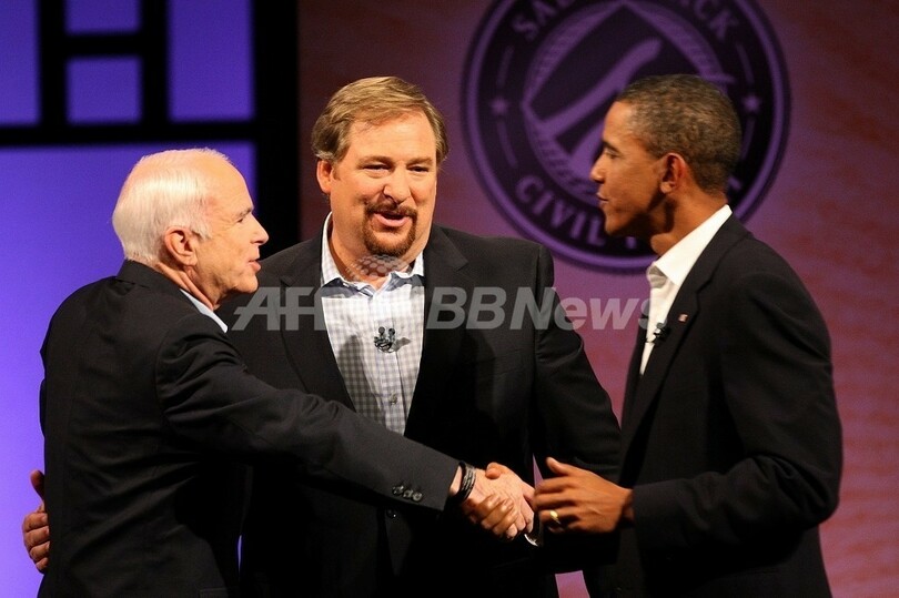 【8月17日 AFP】米大統領選で民主・共和各党の候補指名が確実となっているバラク・オバマ(Barack Obama)、ジョン・マケイン(John McCain)両上院議員は16日、カリフォルニア州のサドルバック教会(Saddleback Church)が主催した大規模な公開討論会で、宗教的信条などをめぐり、選挙戦中初めて直接対決した。