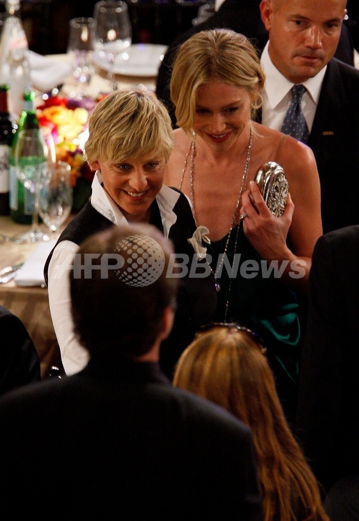 コメディエンヌとして有名なデジェネレスは、テレビ司会者としても活躍中。2007年のアカデミー賞授賞式ではプレゼンターを務めた。デ・ロッシは米人気テレビ番組「アリー・myラブ(Ally McBeal)」に弁護士ネル・ポーター役で出演、その後人気女優となっている。(c)AFP