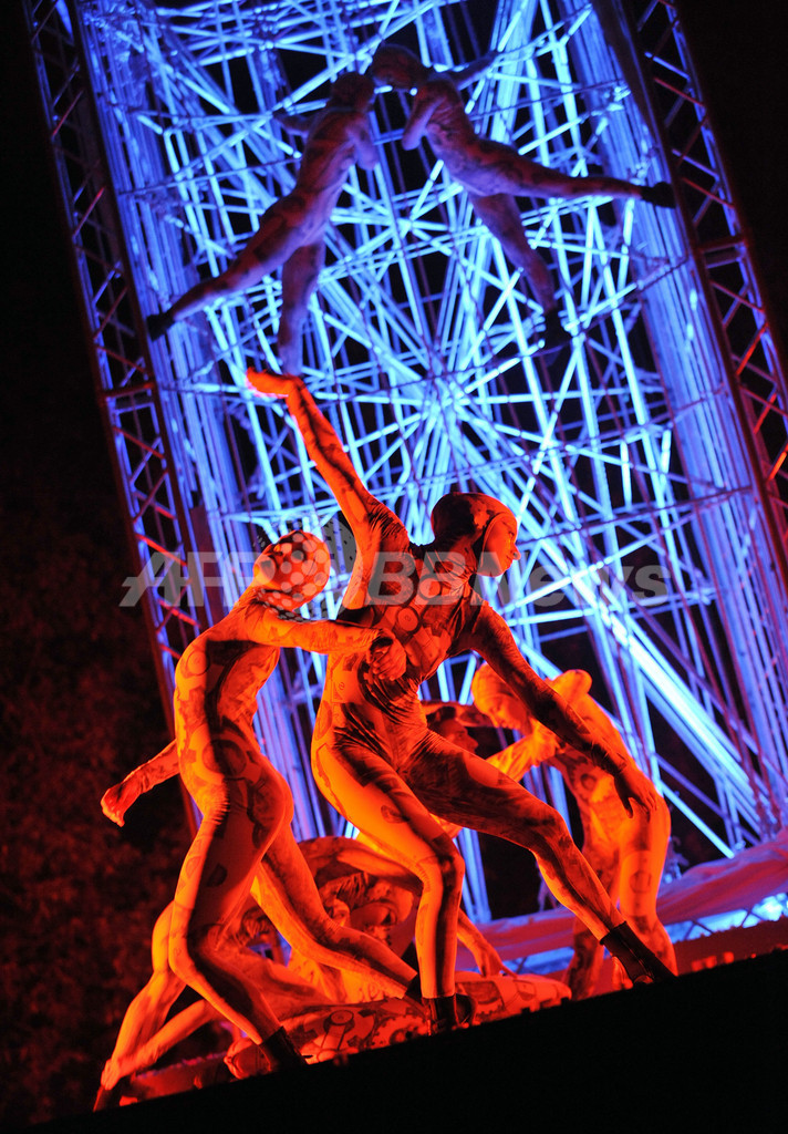 2日目の14日には、アクロバティックな舞台を展開するイタリアの劇団「Kitonb」が、アンジェロ・ボネロ(Angelo Bonello)演出・振り付けの「Carillon 3.0」をHajogyar(造船)島のGigant Street Theatreで上演した。(c)AFP