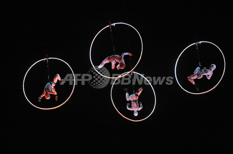 2日目の14日には、アクロバティックな舞台を展開するイタリアの劇団「Kitonb」が、アンジェロ・ボネロ(Angelo Bonello)演出・振り付けの「Carillon 3.0」をHajogyar(造船)島のGigant Street Theatreで上演した。(c)AFP