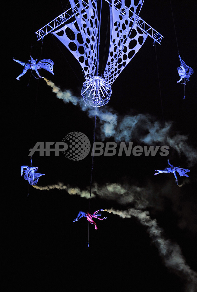 2日目の14日には、アクロバティックな舞台を展開するイタリアの劇団「Kitonb」が、アンジェロ・ボネロ(Angelo Bonello)演出・振り付けの「Carillon 3.0」をHajogyar(造船)島のGigant Street Theatreで上演した。(c)AFP