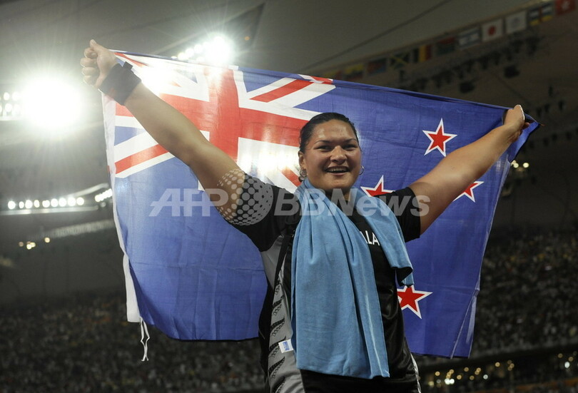 16日に行われた陸上・女子砲丸投げ決勝。身長193センチ、体重110キロのニュージーランドのバレリー・ビリ(Valerie Vili)は、20メートル56を記録して優勝を確信。最後の投てきを行わないまま、コーチと抱き合おうとスタンドに走った。