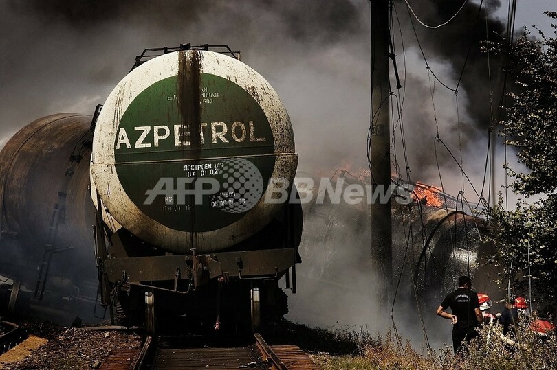 【8月24日 AFP】(写真追加)グルジアのゴリ(Gori)に近い軍事基地跡で24日、燃料輸送列車が線路上の地雷に接触し爆発した。グルジア内務省のShota Utiashvili報道官が明らかにした。