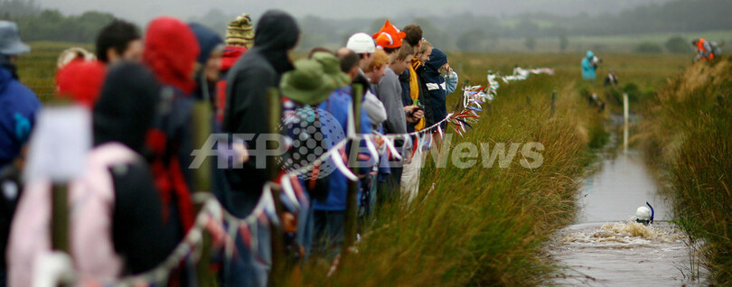 ニュース ライフ こぼれ話 ドロヌマも楽し? 世界泥沼シュノーケリング大会 2008年8月26日 12:02 発信地:スランウルティド・ウェルズ/英国 [ ヨーロッパ 英国 ] このニュースをシェア ‹ › ❮ 3/10 ❯ 英ウェールズ(Wales)地方スランウルティド・ウェルズ(Llanwrtyd Wells)で開催された世界泥沼シュノーケリング選手権大会(World Bog Snorkelling Championships)に出場した参加者(2008年8月25日撮影)。(c)AFP/Ben Stansall 画像作成中 ! 【8月26日 AFP】英ウェールズ(Wales)地方のスランウルティド・ウェルズ(Llanwrtyd Wells)で25日、「世界泥沼シュノーケリング選手権大会(World Bog Snorkelling Championships)」が開催された。毎年恒例のこの大会では、シュノーケルをつけて泥沼を泳ぐ速さを競い合う。(c)AFP ライフ 一覧へ> メディア・報道関係・法人の方向け 写真・動画 購入のお問合せ>