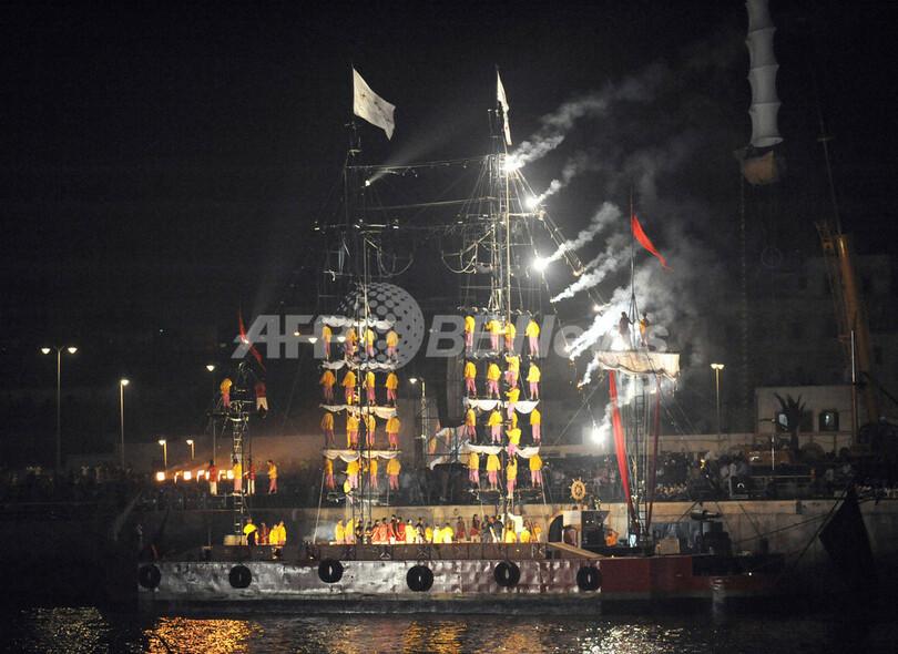 【8月27日 AFP】モロッコの首都ラバト(Rabat)のブーレグレグ(Bouregreg)川で21日夜、フランスのロラン・ガシェ(Laurent Gachet)演出の水上スペクタクル「Les enfants du Bouregreg(ブーレグレグの子どもたち)」が上演された。河口に建つウダイア族のカスバ(Oudayas Casbah)を襲撃・占領する海賊たちを描いた物語で、モロッコの児童救済団体「Moroccan association of children in precarious situations、AMESIP)」が主催、2000人のアーティストが参加した。(c)AFP