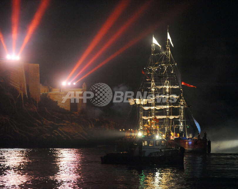 【8月27日 AFP】モロッコの首都ラバト(Rabat)のブーレグレグ(Bouregreg)川で21日夜、フランスのロラン・ガシェ(Laurent Gachet)演出の水上スペクタクル「Les enfants du Bouregreg(ブーレグレグの子どもたち)」が上演された。河口に建つウダイア族のカスバ(Oudayas Casbah)を襲撃・占領する海賊たちを描いた物語で、モロッコの児童救済団体「Moroccan association of children in precarious situations、AMESIP)」が主催、2000人のアーティストが参加した。(c)AFP