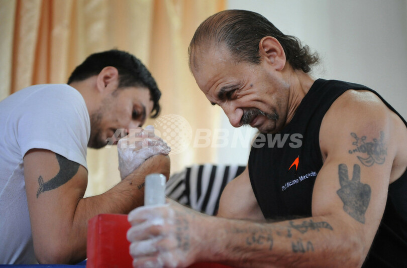 ニュース ライフ こぼれ話 腕に覚えあり!?刑務所内で腕相撲大会 ルーマニア 2008年8月27日 6:34 発信地:ブカレスト/ルーマニア [ ヨーロッパ ルーマニア ] このニュースをシェア ‹ › ❮ 8/8 ❯ ルーマニア・ブカレスト(Bucharest)のRahova刑務所で行われた腕相撲大会の試合に臨む受刑者(2008年8月26日撮影)。(c)AFP/DANIEL MIHAILESCU 画像作成中 ! 【8月27日 AFP】ルーマニア・ブカレスト(Bucharest)のRahova刑務所で26日、受刑者らによる腕相撲大会が開催された。この大会は、同国のアームレスリング協会と同刑務所が主催したもので、受刑者たちの精神面、社会性を向上させることを目的に行われた。(c)AFP ライフ 一覧へ> メディア・報道関係・法人の方向け 写真・動画 購入のお問合せ>