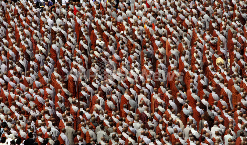 法衣を着た僧侶ら5万5000人(警察推計)が市庁舎前広場に集まり、大きな太鼓の音を合図に異例のデモ行進を開始した。デモ主催者によると、全国の仏教寺院でも鐘を同時に鳴らしたという。