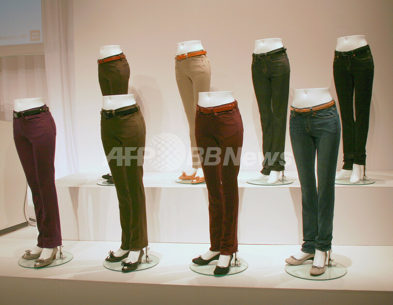 秋冬のレディース新商品である「スリムボトムス」は、足が長く細く見えるカッティングや素材を採用し、動きやすさと履きやすさを追求。ストレートパンツ、コーデュロイストレートパンツ、カラーストレートジーンズ、ストレートジーンズ、テーパードジーンズの5ラインで展開し、価格は2990~3990円。600万本の売り上げを目指す。