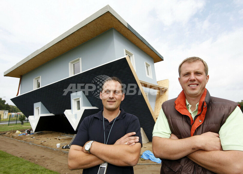 ニュース ライフ こぼれ話 話題騒然「逆さまの家」、ただ今ドイツで建築中 2008年8月29日 11:39 発信地:ウーゼドム島/ドイツ [ ヨーロッパ ドイツ ] このニュースをシェア ‹ › ❮ 12/12 ❯ ドイツ北東部メクレンブルク・フォアポンメルン(Mecklenburg-Western Pomerania)州ウーゼドム島(Usedom Island)Trassenheidで完成間近の上下逆さの住宅前に立つオーナーのSebastian Mikiciukさん(左)とKlaudiusz Golosさん(2008年8月28日撮影)。(c)AFP/DDP/JENS KOEHLER 画像作成中 ! 【8月29日 AFP】上下が逆さまになった住宅が、ドイツ北東部のウーゼドム島(Usedom Island)Trassenheidで建設されている。9月4日から一般公開される。(c)AFP ライフ 一覧へ> メディア・報道関係・法人の方向け 写真・動画 購入のお問合せ>