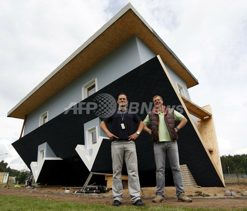 ニュース ライフ こぼれ話 話題騒然「逆さまの家」、ただ今ドイツで建築中 2008年8月29日 11:39 発信地:ウーゼドム島/ドイツ [ ヨーロッパ ドイツ ] このニュースをシェア ‹ › ❮ 11/12 ❯ ドイツ北東部メクレンブルク・フォアポンメルン(Mecklenburg-Western Pomerania)州ウーゼドム島(Usedom Island)Trassenheidで完成間近の上下逆さの住宅前に立つオーナーのSebastian Mikiciukさん(左)とKlaudiusz Golosさん(2008年8月28日撮影)。(c)AFP/DDP/JENS KOEHLER 画像作成中 ! 【8月29日 AFP】上下が逆さまになった住宅が、ドイツ北東部のウーゼドム島(Usedom Island)Trassenheidで建設されている。9月4日から一般公開される。(c)AFP ライフ 一覧へ> メディア・報道関係・法人の方向け 写真・動画 購入のお問合せ>