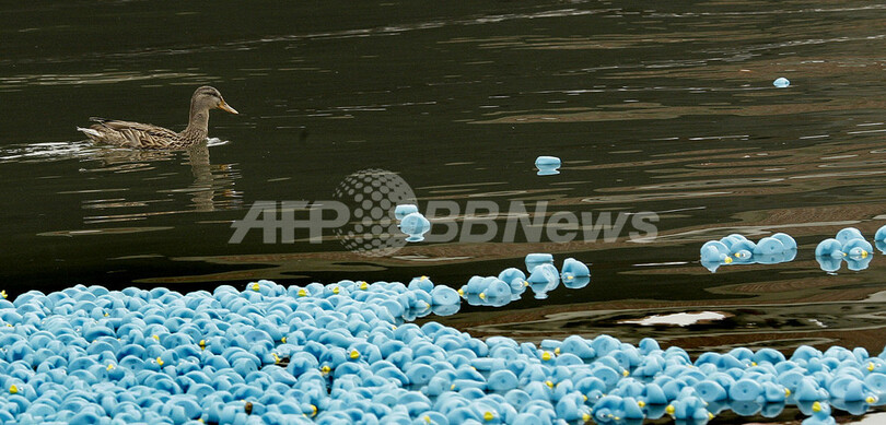 ニュース ライフ こぼれ話 英テムズ川にアヒルが25万匹!?ゴム製おもちゃのダックレース 2008年8月31日 23:39 発信地:ロンドン/英国 [ ヨーロッパ 英国 ] このニュースをシェア ‹ › ❮ 6/8 ❯ ロンドン(London)西部のテムズ川(River Thames)で行われたダックレースに参加した、25万匹に上る青いゴム製のアヒルの人形(2008年8月31日撮影)。(c)AFP/Shaun Curry 画像作成中 ! 【8月31日 AFP】ロンドン(London)西部のテムズ川(River Thames)で31日、ゴム製アヒルによるダックレースが行われた。今年は25万匹が参加し、2キロ下流のゴールを目指した。(c)AFP ライフ 一覧へ> メディア・報道関係・法人の方向け 写真・動画 購入のお問合せ>