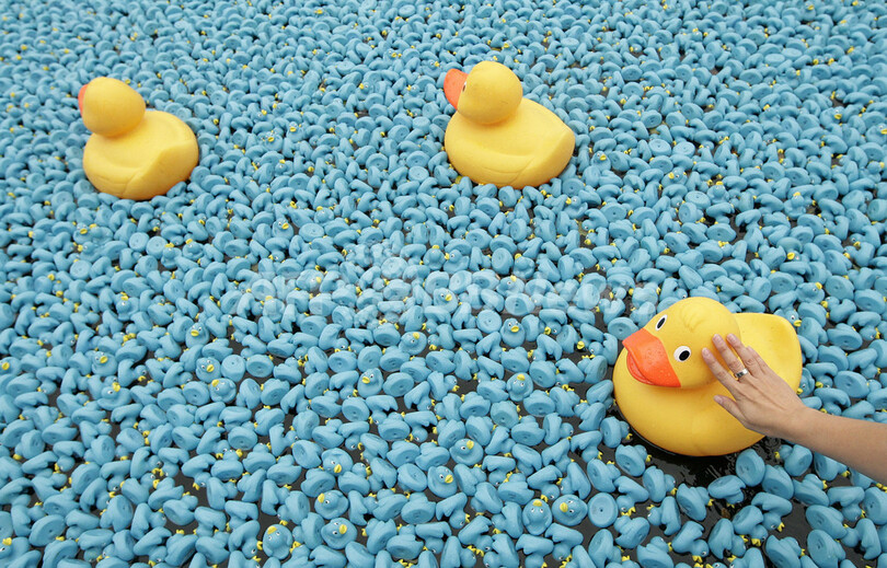 ニュース ライフ こぼれ話 英テムズ川にアヒルが25万匹!?ゴム製おもちゃのダックレース 2008年8月31日 23:39 発信地:ロンドン/英国 [ ヨーロッパ 英国 ] このニュースをシェア ‹ › ❮ 2/8 ❯ ロンドン(London)西部のテムズ川(River Thames)で行われたダックレースに参加した、25万匹に上る青いゴム製のアヒルの人形(2008年8月31日撮影)。(c)AFP/Shaun Curry 画像作成中 ! 【8月31日 AFP】ロンドン(London)西部のテムズ川(River Thames)で31日、ゴム製アヒルによるダックレースが行われた。今年は25万匹が参加し、2キロ下流のゴールを目指した。(c)AFP ライフ 一覧へ> メディア・報道関係・法人の方向け 写真・動画 購入のお問合せ>