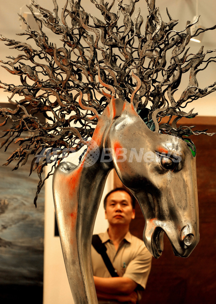 台湾の台北世界貿易センター(Taipei World Trade Center)で開催中の「2008台北国際芸術博覧会(Art Taipei 2008)」に展示されたフィリピンの現代美術家Gabriel Barredoの彫刻『Horse's Head』(2008年8月29日撮影)。(c)AFP/Sam YEH