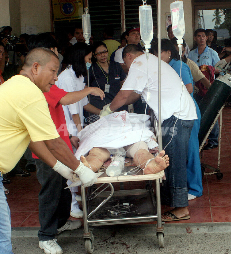 ニュース 社会 フィリピン・ミンダナオ島、停車中のバスが爆発 5人死亡 2008年9月2日 8:34 発信地:ディゴス/フィリピン [ アジア・オセアニア フィリピン ] このニュースをシェア ‹ › ❮ 6/6 ❯ フィリピン南部ミンダナオ(Mindanao)島のディゴス(Digos)で、病院に搬送されるバスの爆発事件の被害者(2008年9月1日撮影)。(c)AFP 画像作成中 ! 【9月2日 AFP】フィリピン南部ミンダナオ(Mindanao)島のディゴス(Digos)で1日、バスターミナルに停車中のバスが爆発、5人が死亡、32人が負傷した。地元警察や災害当局が明らかにした。 当局によると、爆発は簡易爆弾によって引き起こされたという。これまでのところ、犯行声明は出ていない。(c)AFP 社会 一覧へ> メディア・報道関係・法人の方向け 写真・動画 購入のお問合せ>