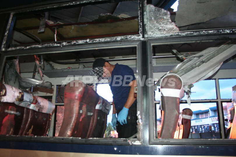 ニュース 社会 フィリピン・ミンダナオ島、停車中のバスが爆発 5人死亡 2008年9月2日 8:34 発信地:ディゴス/フィリピン [ アジア・オセアニア フィリピン ] このニュースをシェア ‹ › ❮ 5/6 ❯ フィリピン南部ミンダナオ(Mindanao)島のディゴス(Digos)のバスターミナルで、爆発があったバスの車内を調べる警察官(2008年9月1日撮影)。(c)AFP 画像作成中 ! 【9月2日 AFP】フィリピン南部ミンダナオ(Mindanao)島のディゴス(Digos)で1日、バスターミナルに停車中のバスが爆発、5人が死亡、32人が負傷した。地元警察や災害当局が明らかにした。 当局によると、爆発は簡易爆弾によって引き起こされたという。これまでのところ、犯行声明は出ていない。(c)AFP 社会 一覧へ> メディア・報道関係・法人の方向け 写真・動画 購入のお問合せ>
