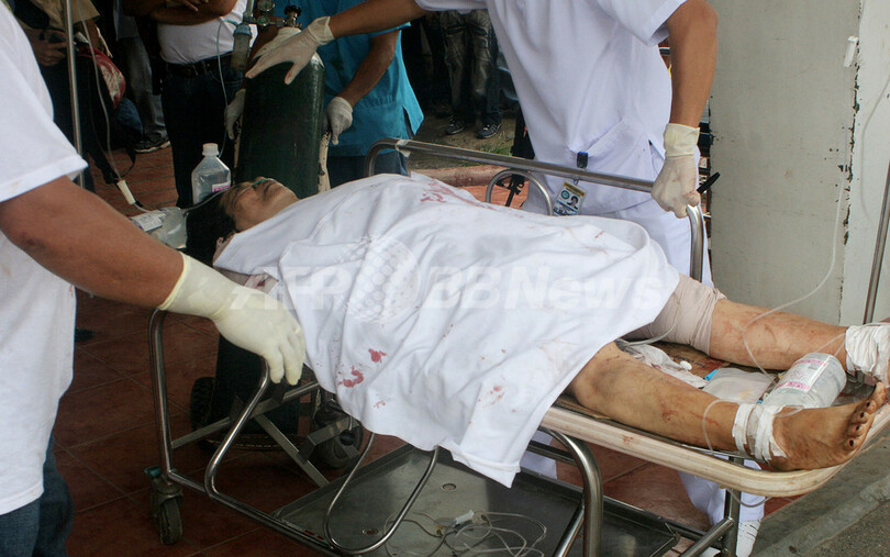 ニュース 社会 フィリピン・ミンダナオ島、停車中のバスが爆発 5人死亡 2008年9月2日 8:34 発信地:ディゴス/フィリピン [ アジア・オセアニア フィリピン ] このニュースをシェア ‹ › ❮ 4/6 ❯ フィリピン南部ミンダナオ(Mindanao)島のディゴス(Digos)で、病院に搬送されるバスの爆発事件の被害者(2008年9月1日撮影)。(c)AFP 画像作成中 ! 【9月2日 AFP】フィリピン南部ミンダナオ(Mindanao)島のディゴス(Digos)で1日、バスターミナルに停車中のバスが爆発、5人が死亡、32人が負傷した。地元警察や災害当局が明らかにした。 当局によると、爆発は簡易爆弾によって引き起こされたという。これまでのところ、犯行声明は出ていない。(c)AFP 社会 一覧へ> メディア・報道関係・法人の方向け 写真・動画 購入のお問合せ>