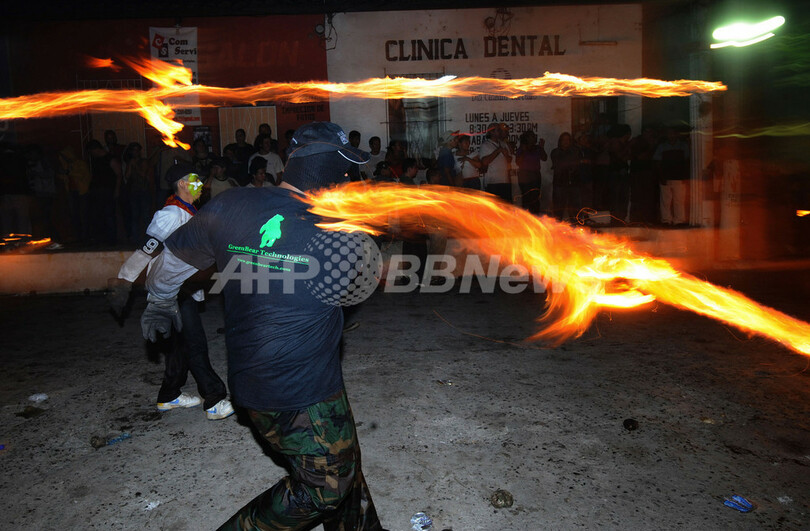 【9月3日 AFP】中米エルサルバドルで8月31日、首都サンサルバドル(San Salvador)近郊の都市ネハパ(Nejapa)で火の玉を投げ合う祭り「ラ・レクエルダ(La Recuerda、追悼の意)」が開かれた。