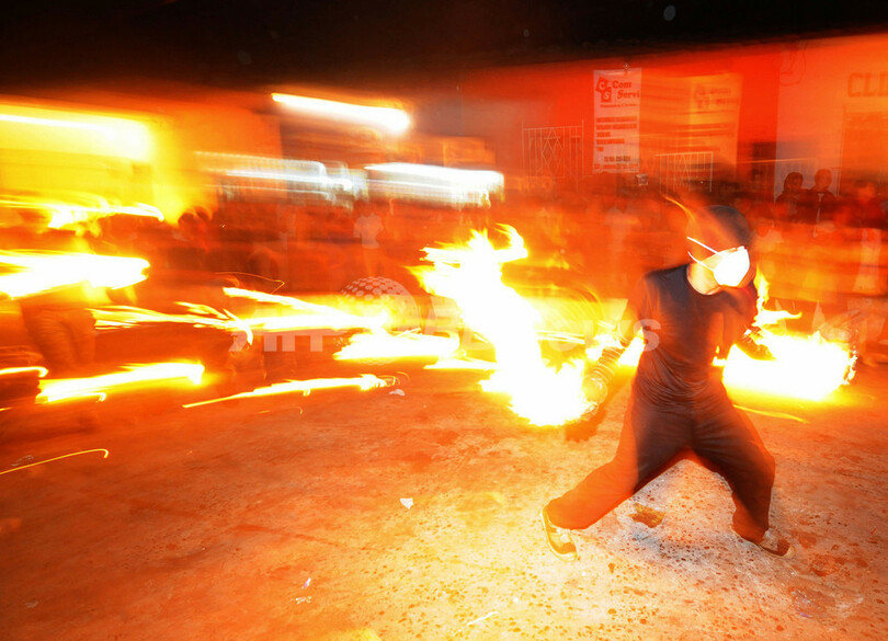 【9月3日 AFP】中米エルサルバドルで8月31日、首都サンサルバドル(San Salvador)近郊の都市ネハパ(Nejapa)で火の玉を投げ合う祭り「ラ・レクエルダ(La Recuerda、追悼の意)」が開かれた。