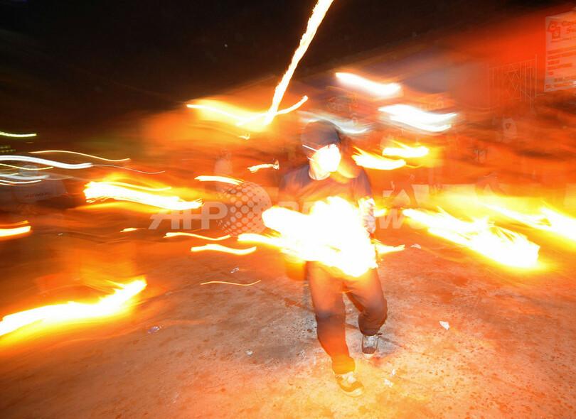 【9月3日 AFP】中米エルサルバドルで8月31日、首都サンサルバドル(San Salvador)近郊の都市ネハパ(Nejapa)で火の玉を投げ合う祭り「ラ・レクエルダ(La Recuerda、追悼の意)」が開かれた。