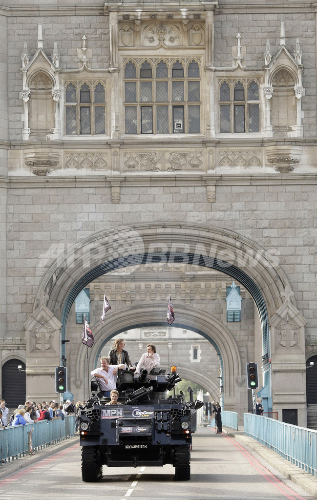 Top Gear)」の司会者3人が戦車に乗って市内名所のタワーブリッジ(