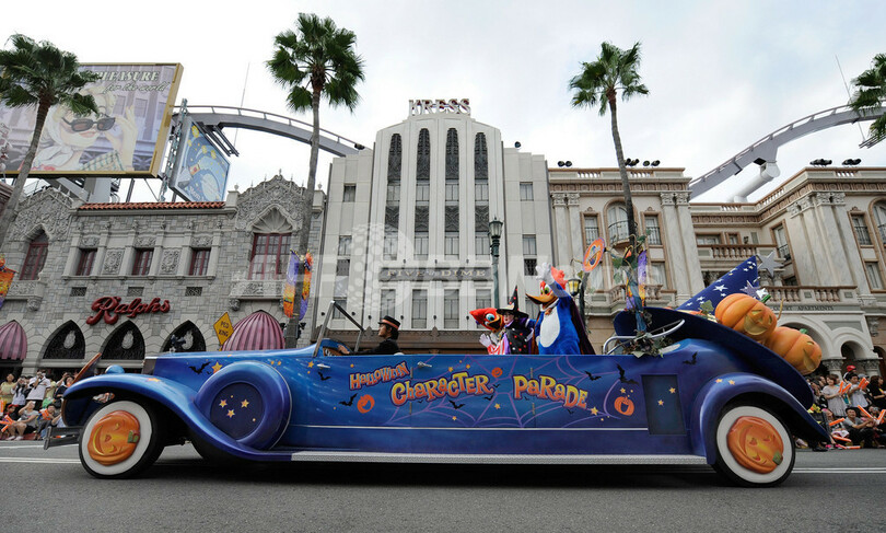 【9月3日 AFP】(写真追加)大阪市の人気テーマパーク「ユニバーサル・スタジオ・ジャパン(Universal Studios Japan、USJ)」で3日、新企画のハロウィーン仮装パレードが報道陣に公開され、米人気キャラクターのウッディー・ウッドペッカー(Woody Woodpecker)やウィニー・ウッドペッカー(Winnie Woodpecker)とともに、大阪の人気人形「くいだおれ太郎」がリムジンに乗って登場した。