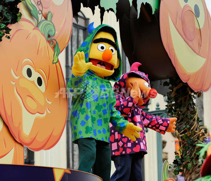 【9月3日 AFP】(写真追加)大阪市の人気テーマパーク「ユニバーサル・スタジオ・ジャパン(Universal Studios Japan、USJ)」で3日、新企画のハロウィーン仮装パレードが報道陣に公開され、米人気キャラクターのウッディー・ウッドペッカー(Woody Woodpecker)やウィニー・ウッドペッカー(Winnie Woodpecker)とともに、大阪の人気人形「くいだおれ太郎」がリムジンに乗って登場した。