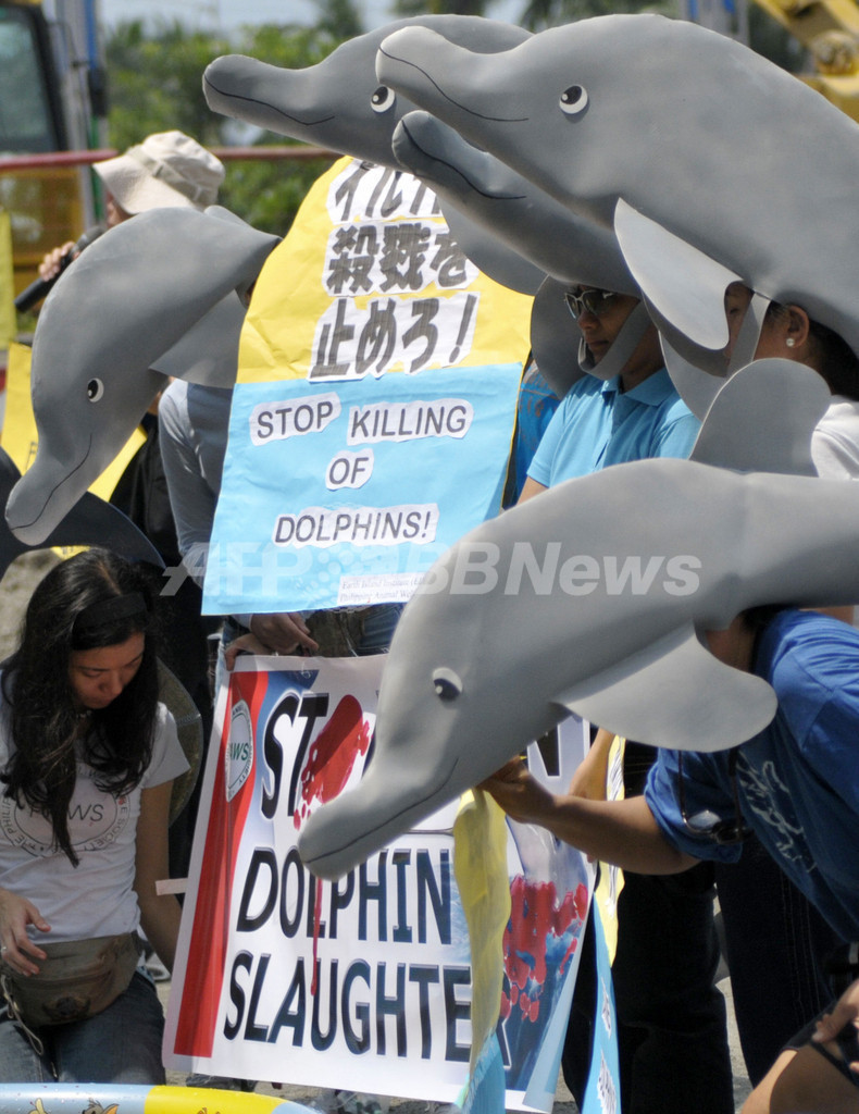 日本のイルカ漁に反対、世界各地でデモ