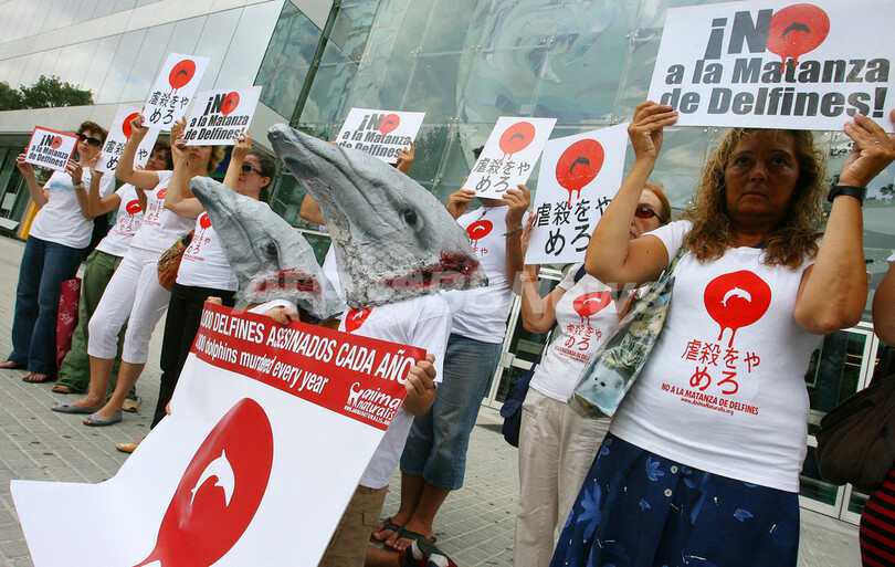 日本のイルカ漁に反対、世界各地でデモ