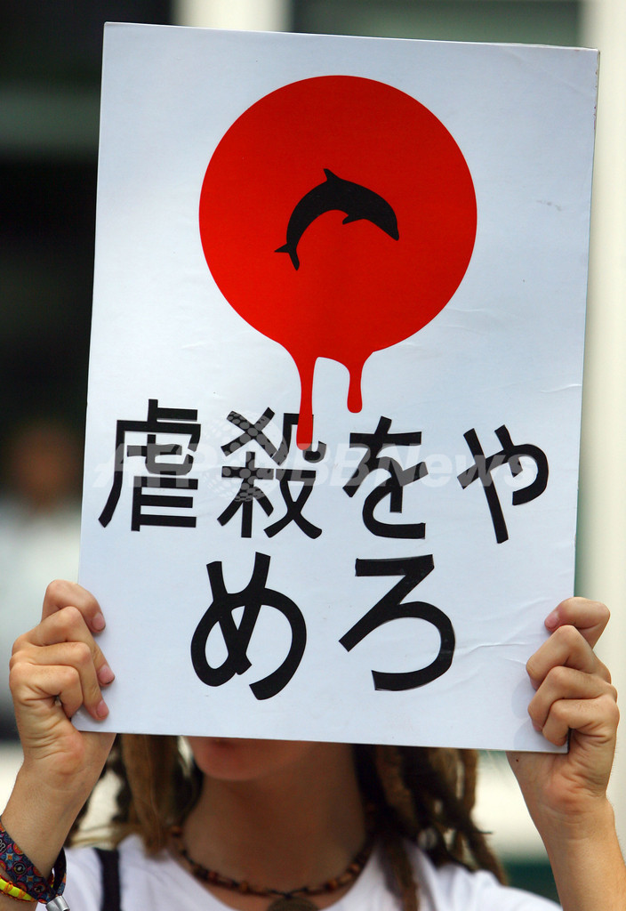 【9月4日 AFP】(写真追加)米国ほか世界各地の主要都市で3日、環境・動物保護団体が日本の捕鯨やイルカ漁などに抗議する大規模なデモ活動を行った。保護団体は、小型のクジラやイルカなど約2万頭が日本の漁民により殺されていると非難している。