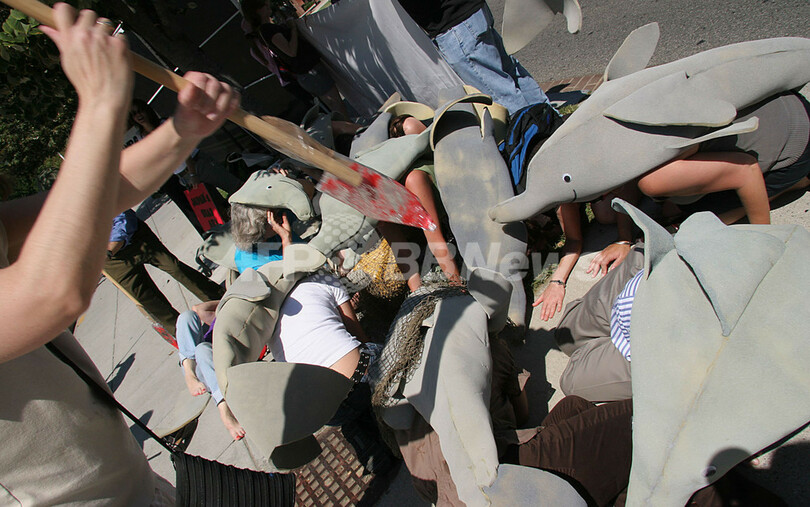 日本のイルカ漁に反対、世界各地でデモ
