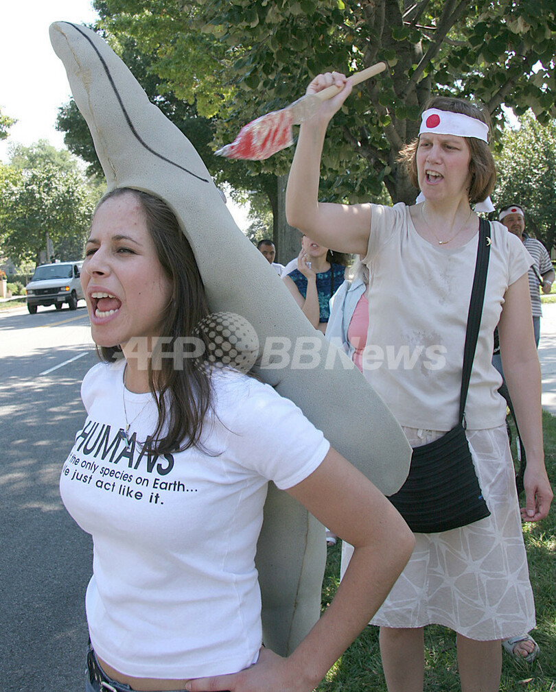 【9月4日 AFP】(写真追加)米国ほか世界各地の主要都市で3日、環境・動物保護団体が日本の捕鯨やイルカ漁などに抗議する大規模なデモ活動を行った。保護団体は、小型のクジラやイルカなど約2万頭が日本の漁民により殺されていると非難している。