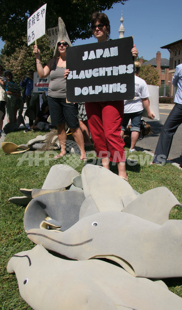 【9月4日 AFP】(写真追加)米国ほか世界各地の主要都市で3日、環境・動物保護団体が日本の捕鯨やイルカ漁などに抗議する大規模なデモ活動を行った。保護団体は、小型のクジラやイルカなど約2万頭が日本の漁民により殺されていると非難している。