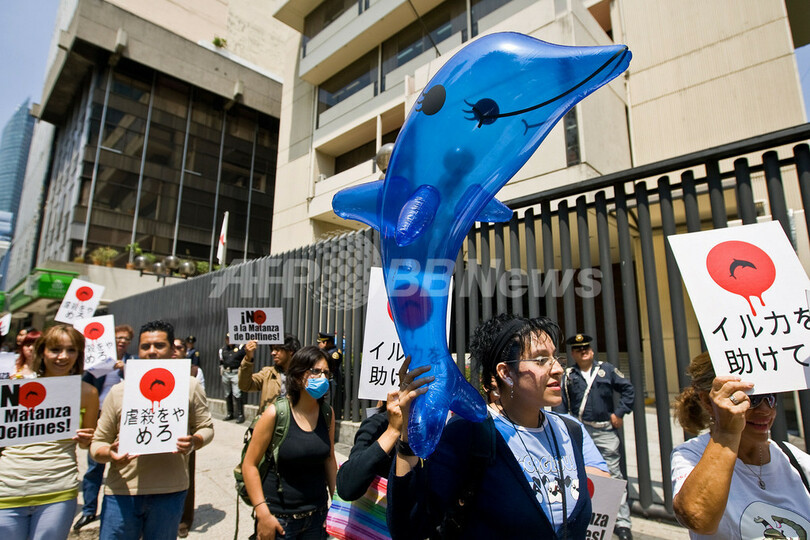【9月4日 AFP】(写真追加)米国ほか世界各地の主要都市で3日、環境・動物保護団体が日本の捕鯨やイルカ漁などに抗議する大規模なデモ活動を行った。保護団体は、小型のクジラやイルカなど約2万頭が日本の漁民により殺されていると非難している。