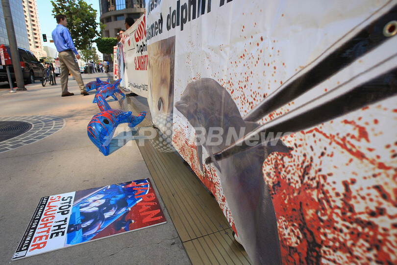 日本のイルカ漁に反対、世界各地でデモ