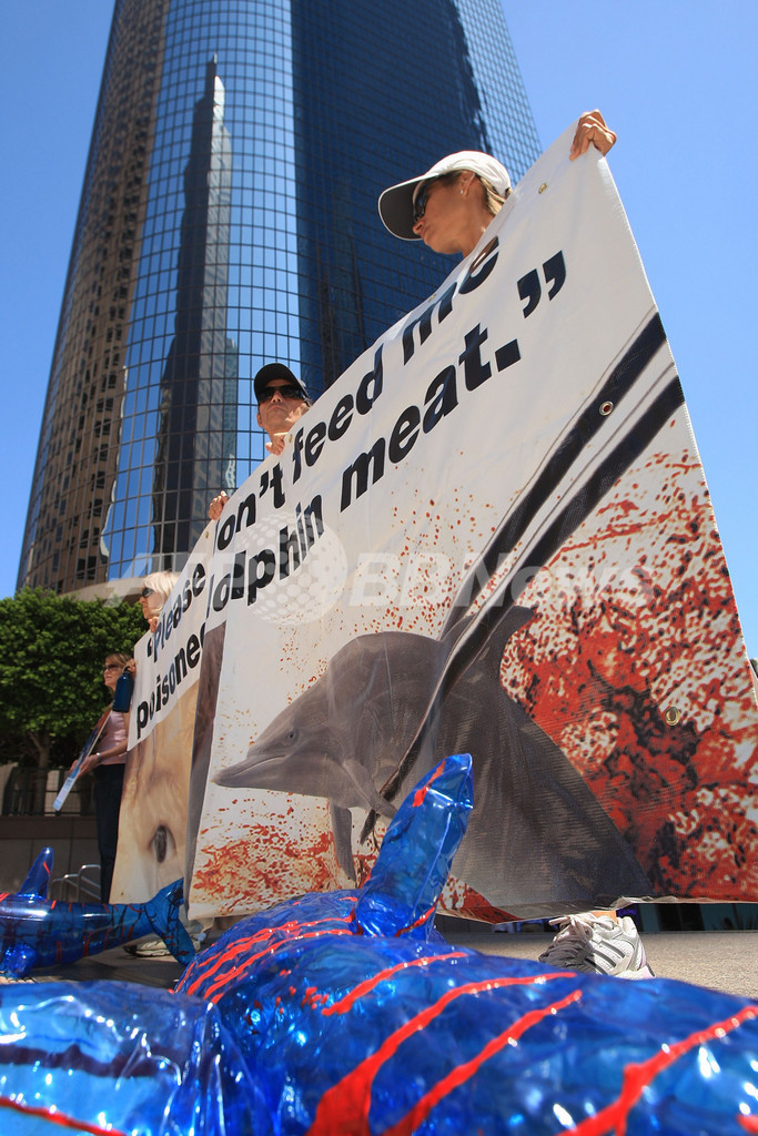 日本のイルカ漁に反対、世界各地でデモ