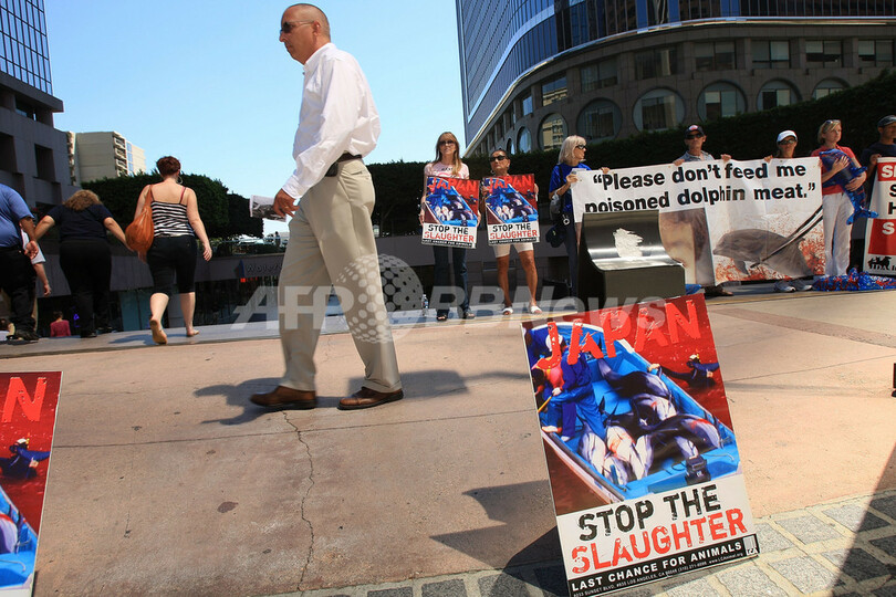 【9月4日 AFP】(写真追加)米国ほか世界各地の主要都市で3日、環境・動物保護団体が日本の捕鯨やイルカ漁などに抗議する大規模なデモ活動を行った。保護団体は、小型のクジラやイルカなど約2万頭が日本の漁民により殺されていると非難している。