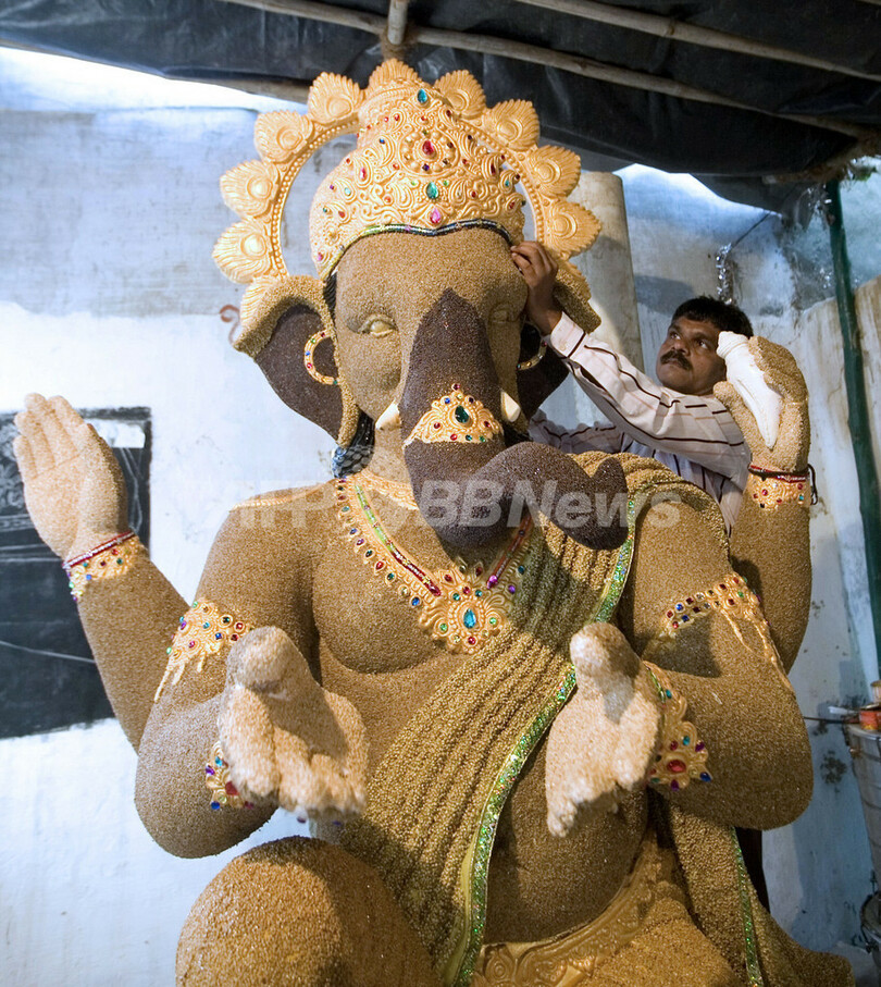 ニュース ライフ インド全国でガネーシャ祭り準備進む、電球に入ったゾウの神様も登場 2008年9月4日 15:47 発信地:アムリツァル/インド [ アジア・オセアニア インド ] このニュースをシェア ‹ › ❮ 12/12 ❯ インドのアーメダバッド(Ahmedabad)で、ガネーシャ(Ganesha)祭用のガネーシャ神の像を仕上げる職人(2008年9月1日撮影)。(c)AFP/Sam PANTHAKY 画像作成中 ! 【9月4日 AFP】インド全国でヒンズー教の祭典、ガネーシャ(Ganesha)祭が間もなくスタートする。祭典の10日間、信者はゾウの姿をしたガネーシャ神の像を自宅に供え、英知と繁栄を祈る。像を海や川に像を沈める儀式で、祭典は最高潮を迎える。(c)AFP ライフ 一覧へ> メディア・報道関係・法人の方向け 写真・動画 購入のお問合せ>