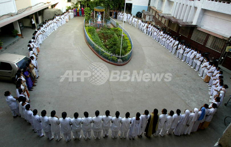 【9月8日 AFP】インド南部ハイデラバード(Hyderabad)のカトリック教系病院「Vijay Marie Hospital」で、「ノベナ(Novena)」の祈りのため聖母マリア像の周囲に集まったカトリック教信者ら。