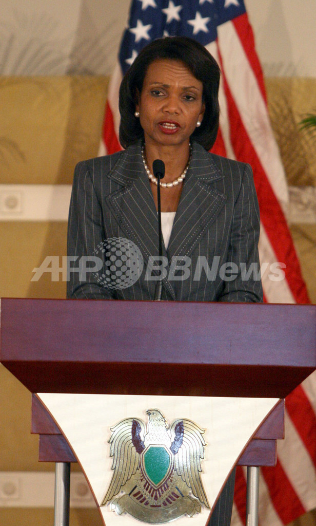 ライス長官が、かつてロナルド・レーガン(Ronald Reagan)米元大統領に「狂犬」と呼ばれたカダフィ大佐と会談したのは、トリポリ市内に位置する大佐の公邸だった。公邸は1986年、レーガン元大統領の命令で米軍の空爆を受けている。