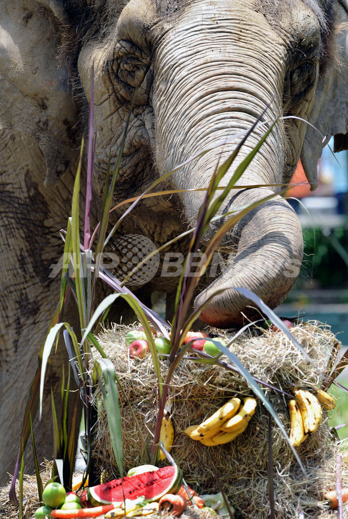 Zoo of Santa Fe)で6日、67歳の誕生日を迎えバースデーケーキをほおばるゾウの