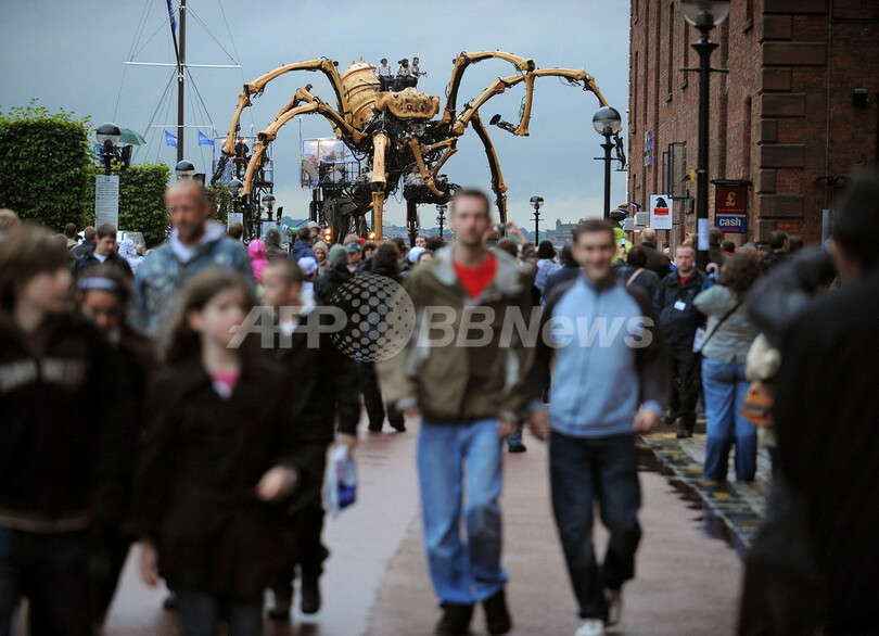 【9月8日 AFP】英北西部リバプール(Liverpool)で5日、巨大なクモ型ロボットが、中心部のアルバート埠頭(Albert Dock)やオフィスビルの壁面に姿を現した。