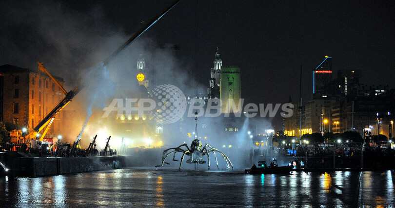【9月8日 AFP】英北西部リバプール(Liverpool)で5日、巨大なクモ型ロボットが、中心部のアルバート埠頭(Albert Dock)やオフィスビルの壁面に姿を現した。