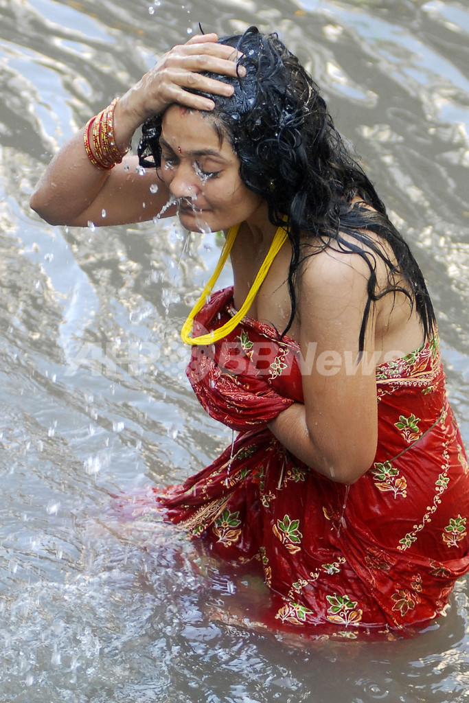 ヒンズー教の女性の祭日「リシ・パンチャミ」、川で祈りささげる信者ら
