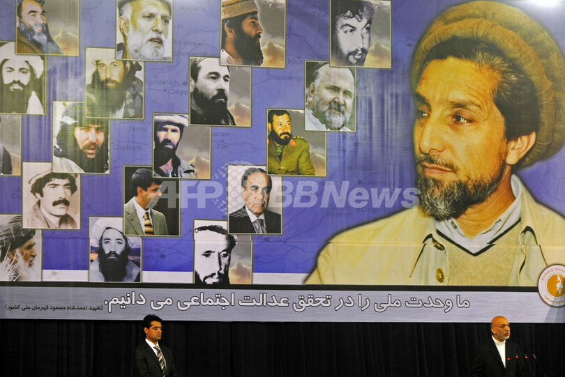 マスード氏は国際テロ組織アルカイダ(al-Qaeda)によって暗殺されたとみられている。死後、同氏にはカルザイ氏の出した大統領令により「国民的英雄」の称号が与えられた。9月9日は「マスードの日(Massoud Day)」として知らる国民の休日に制定されている。(c)AFP