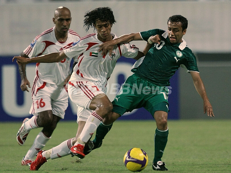 スポーツ サッカー サウジアラビア UAEに逆転勝ち 2008年9月11日 11:18 発信地:アブダビ/アラブ首長国連邦 [ 中東・北アフリカ アラブ首長国連邦 ] このニュースをシェア ‹ › ❮ 4/6 ❯ UAEの%%Faisal al-Junaibi%%(左)と競り合うサウジアラビアのモハメド・アル・シャルフーブ(%%Mohammed al-Shalhub%%)。(2008年9月10日撮影)(c)AFP/MARWAN NAAMANI 画像作成中 ! 【9月11日 AFP】2010年サッカーW杯南アフリカ大会(2010 World Cup)アジア最終予選・グループB、アラブ首長国連邦(UAE)対サウジアラビア。試合はサウジアラビアが2-1でUAEから勝利を収めた。(c)AFP サッカー 一覧へ> メディア・報道関係・法人の方向け 写真・動画 購入のお問合せ>