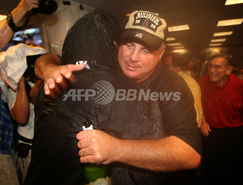 【9月10日 AFP】08MLB、ロサンゼルス・エンゼルス・オブ・アナハイム(Los Angeles Angels of Anaheim)対ニューヨーク・ヤンキース(New York Yankees)。試合はエンゼルスが4-2でヤンキースを下し、2年連続のア・リーグ西地区優勝を果たした。