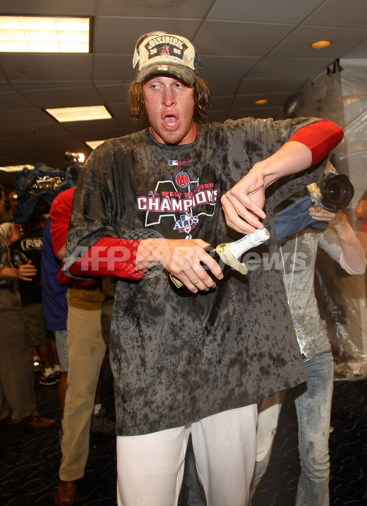 【9月10日 AFP】08MLB、ロサンゼルス・エンゼルス・オブ・アナハイム(Los Angeles Angels of Anaheim)対ニューヨーク・ヤンキース(New York Yankees)。試合はエンゼルスが4-2でヤンキースを下し、2年連続のア・リーグ西地区優勝を果たした。