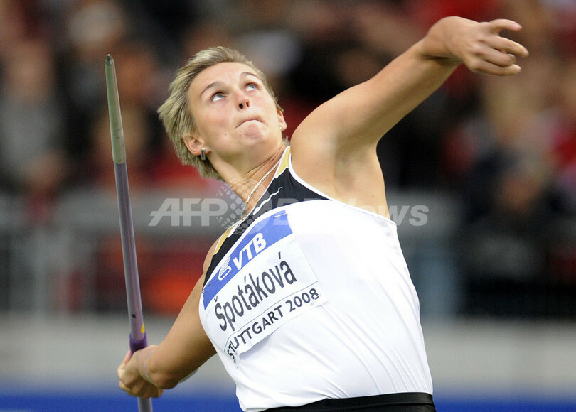 北京五輪の同種目で金メダルを獲得しスポタコバは、2005年に開催された第10回世界陸上ヘルシンキ大会(10th World Championships in Athletics Helsinki)でキューバのオスレイディス・メネンデス(Osleidys Menendez)が記録した71メートル70を58センチメートル更新した。(c)AFP