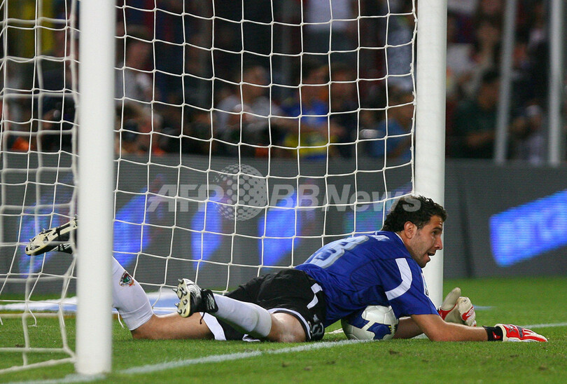 【9月14日 AFP】08-09スペイン1部リーグ第2節、FCバルセロナ(FC Barcelona)対ラシン・サンタンデール(Racing Santander)。試合は後半25分にリオネル・メッシ(Lionel Messi)がPKを決めてバルセロナが先制したが、同31分にホナタン・ペレイラ(Jonathan Pereira Rodriguez)に同点ゴールを決められ1-1の引き分けに終わり、バルセロナは本拠地でのリーグ開幕戦を白星で飾ることができなかった。(c)AFP/Phil Seery